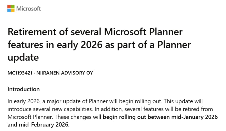 In early 2026, Microsoft Planner will roll out a major update with new features like task chats and custom templates, while retiring features such as the old task comments, whiteboard tab for premium plans, Planner component in Loop, Viva Goals integration, and iCalendar feed. Some features will be temporarily unavailable.